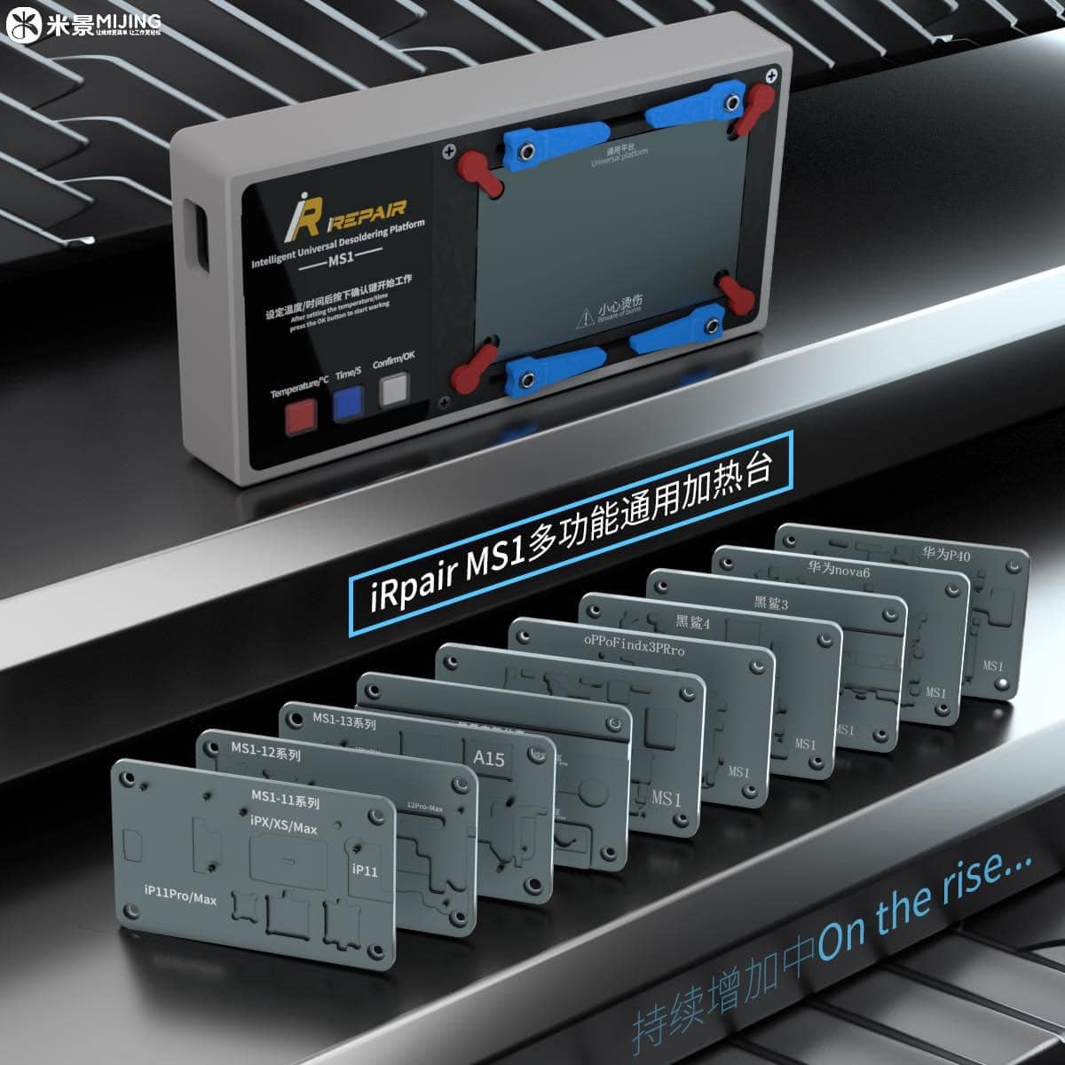 Mijing iRepair MS1 desoldering preheating platform for iPhone X-16 Pro Max motherboard CPU IC heating disassembly and glue removal. iRepair MS1 Soldering heating Station MS1-14/15 module for iPhone 14/14 Plus/14 Pro/14 Pro Max/15/15 Plus/15 Pro/15 Pro Max/16/16 Plus/16 Pro/16 Pro Max.
